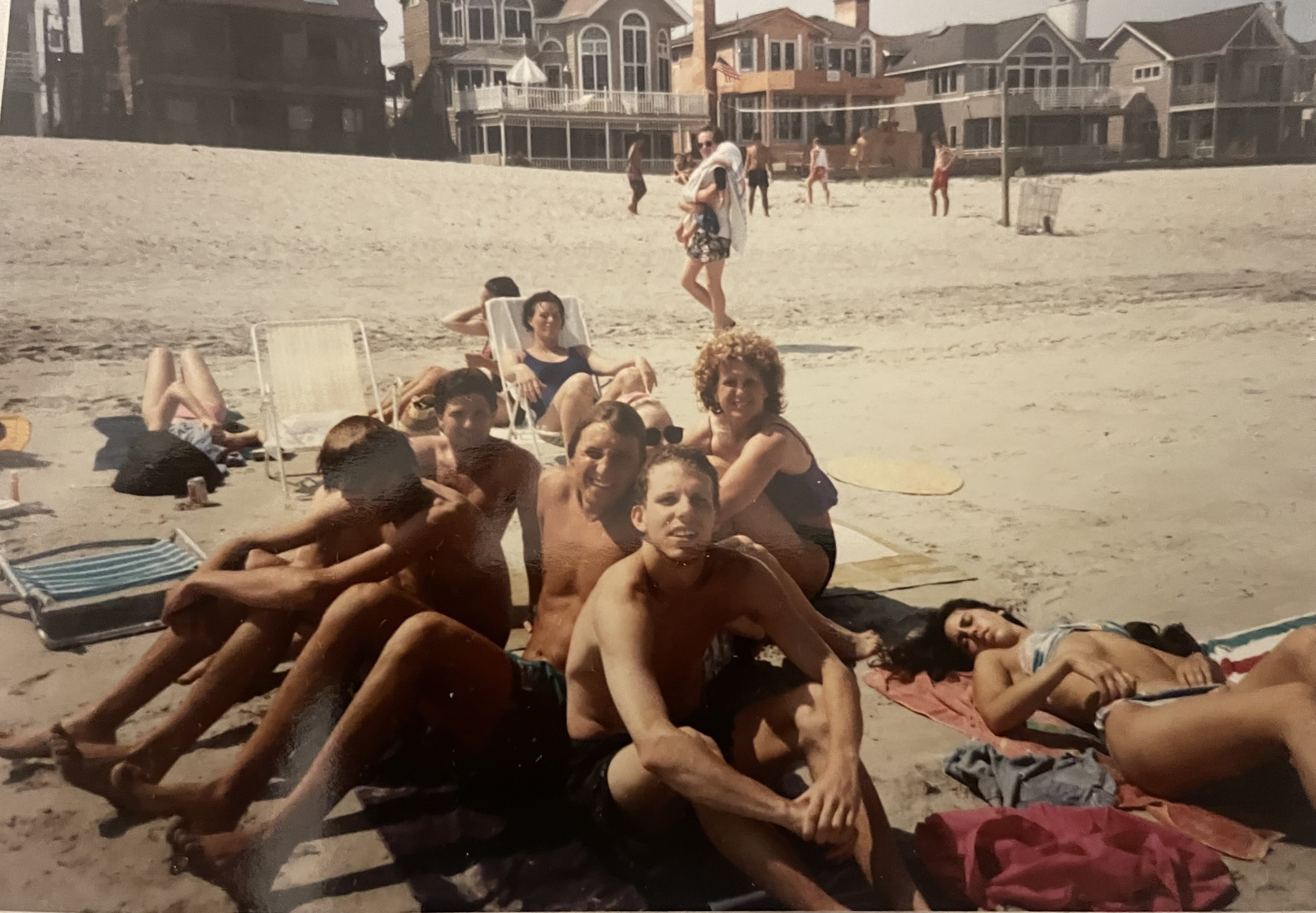 Four dopey guys at the beach after graduation from high school, June 1990: Dego, Dan, Froney, Jamie.