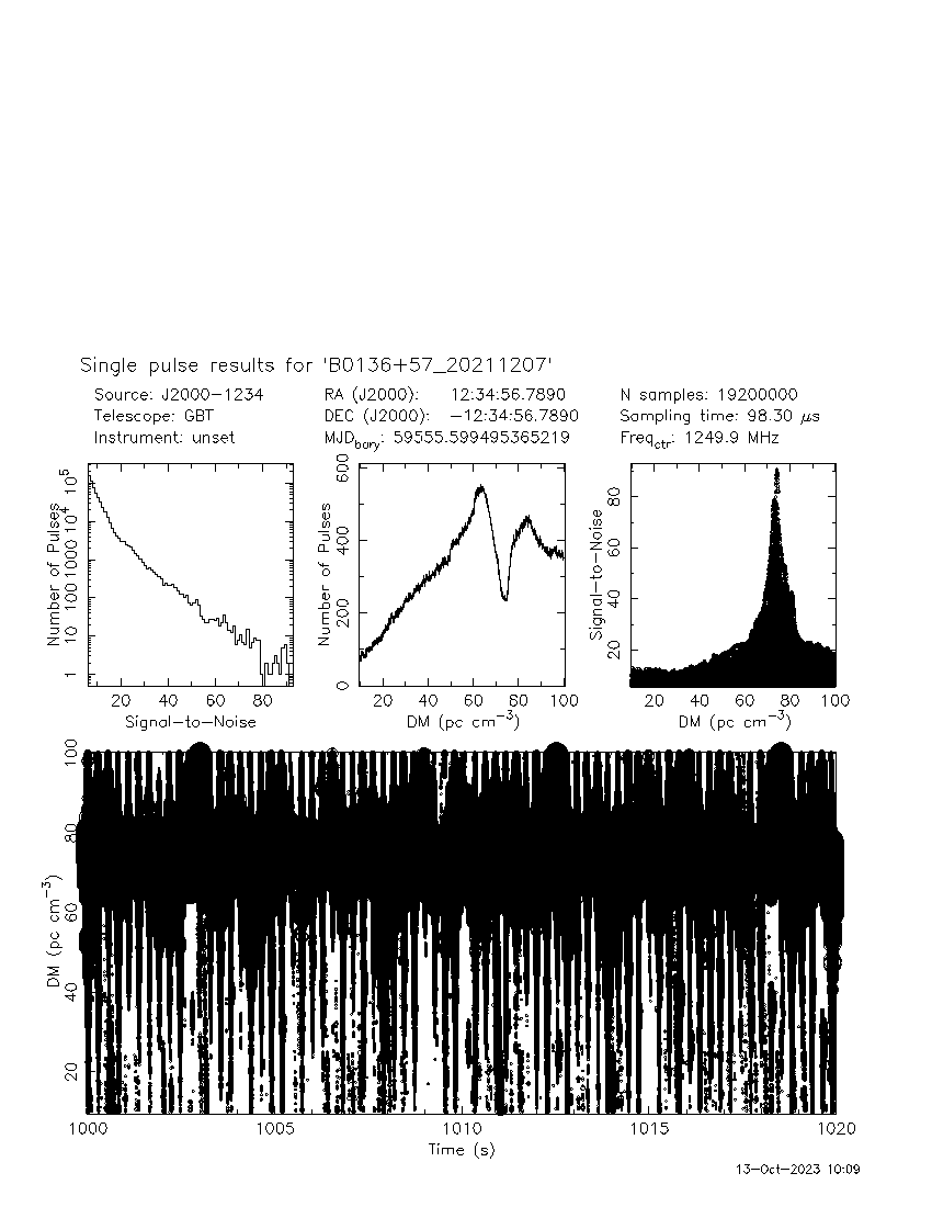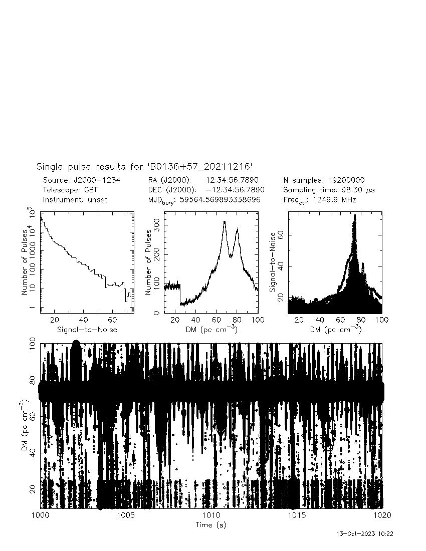 * presto perodicity search (no acceleration, DM_max 2000): B0136+57 detection (sigma=7755)