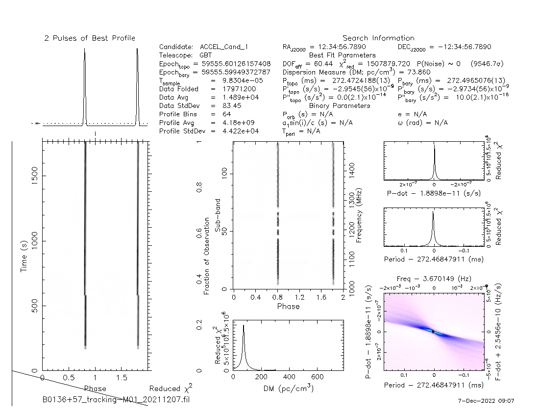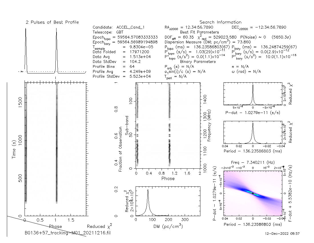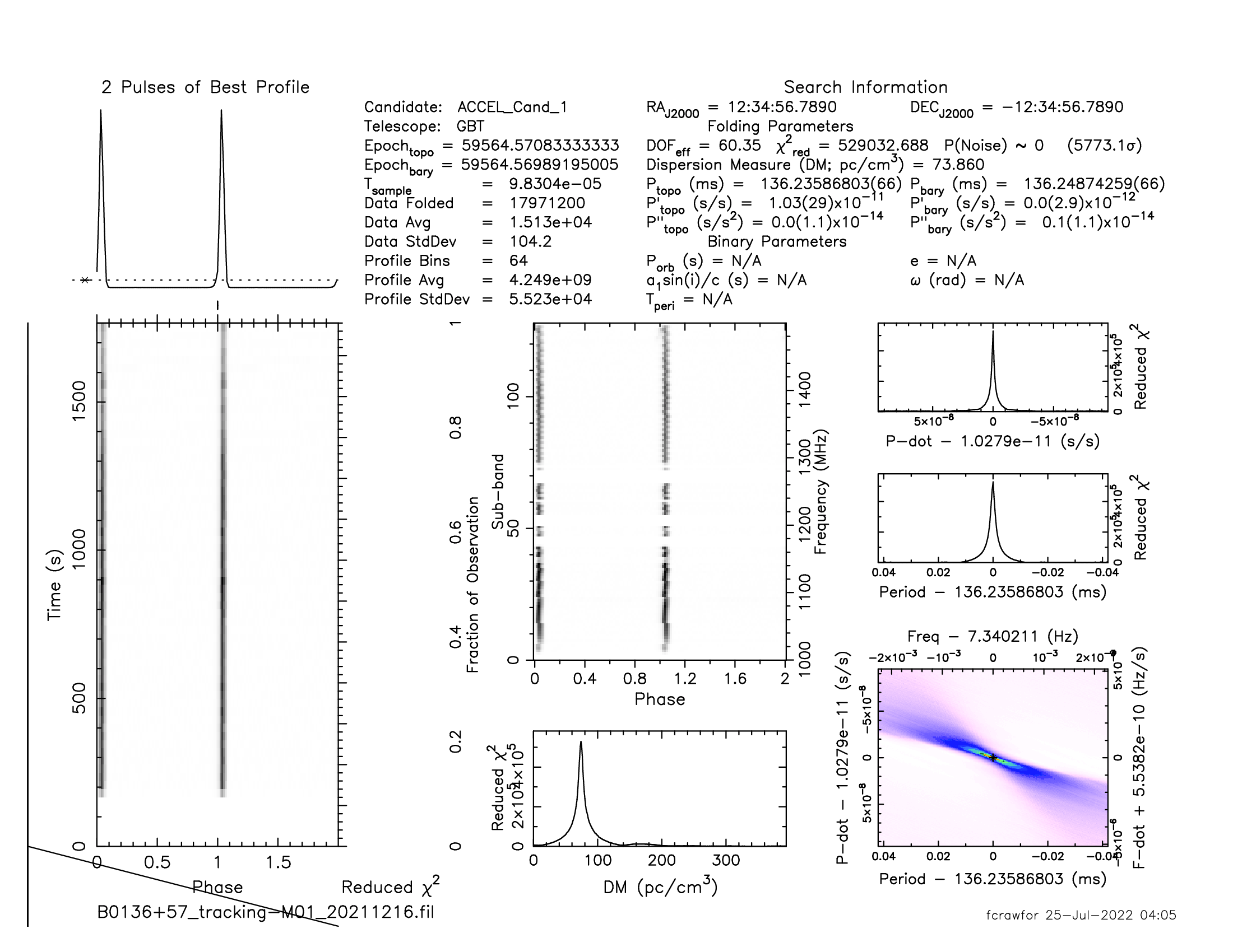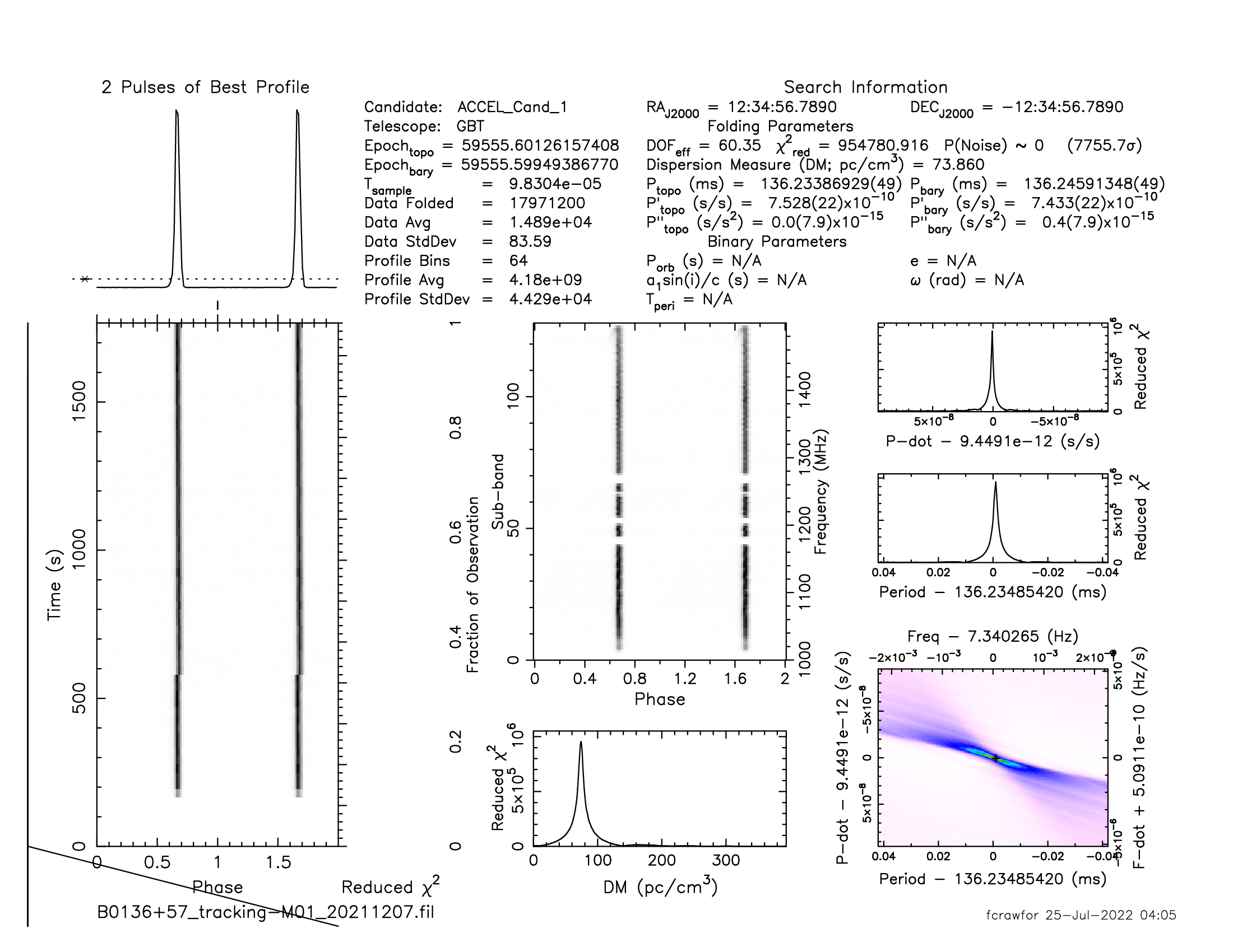 * presto perodicity search (zmax 1200, DM_max 2000): B0136+57 detection (sigma=9546)