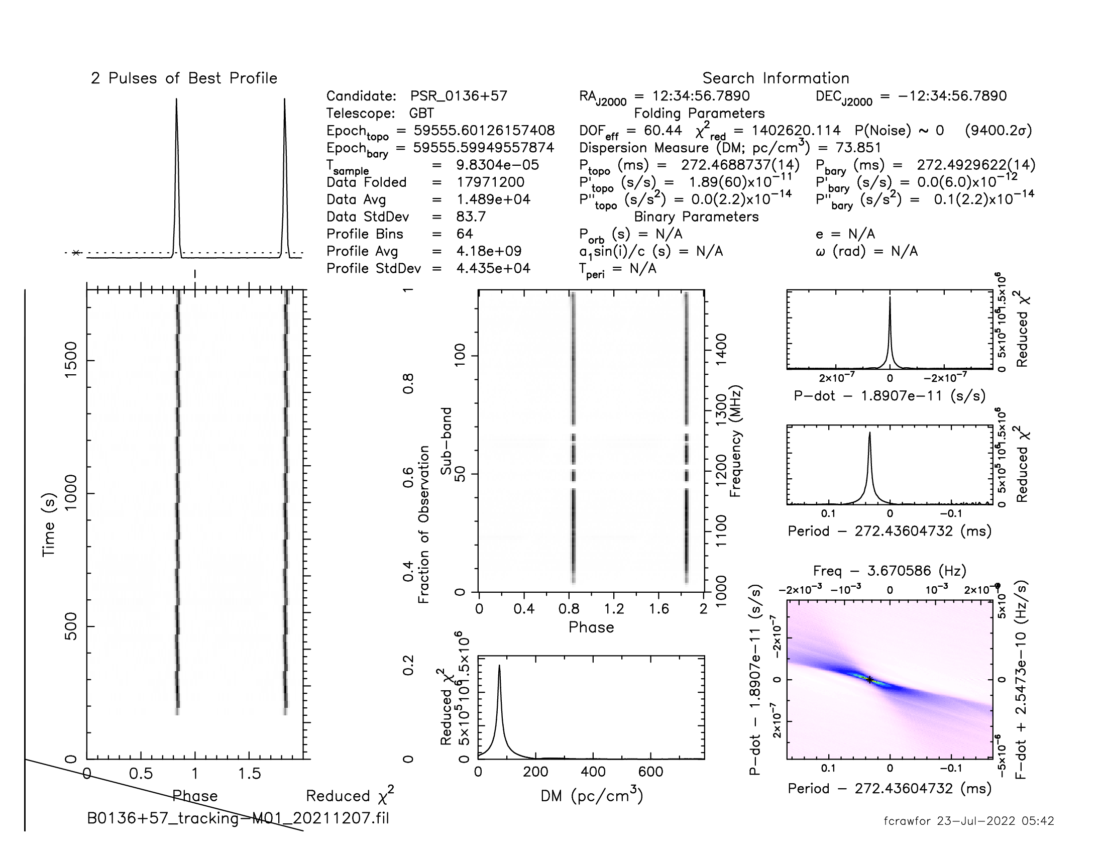 * prepfold direct fold: B0136+57 detection (sigma=9400)