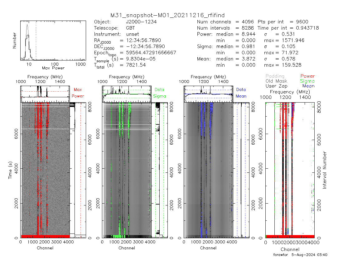 * presto single pulse search (plots in 900 sec windows, DM_max 2000): no good candidates above S/N 6.0