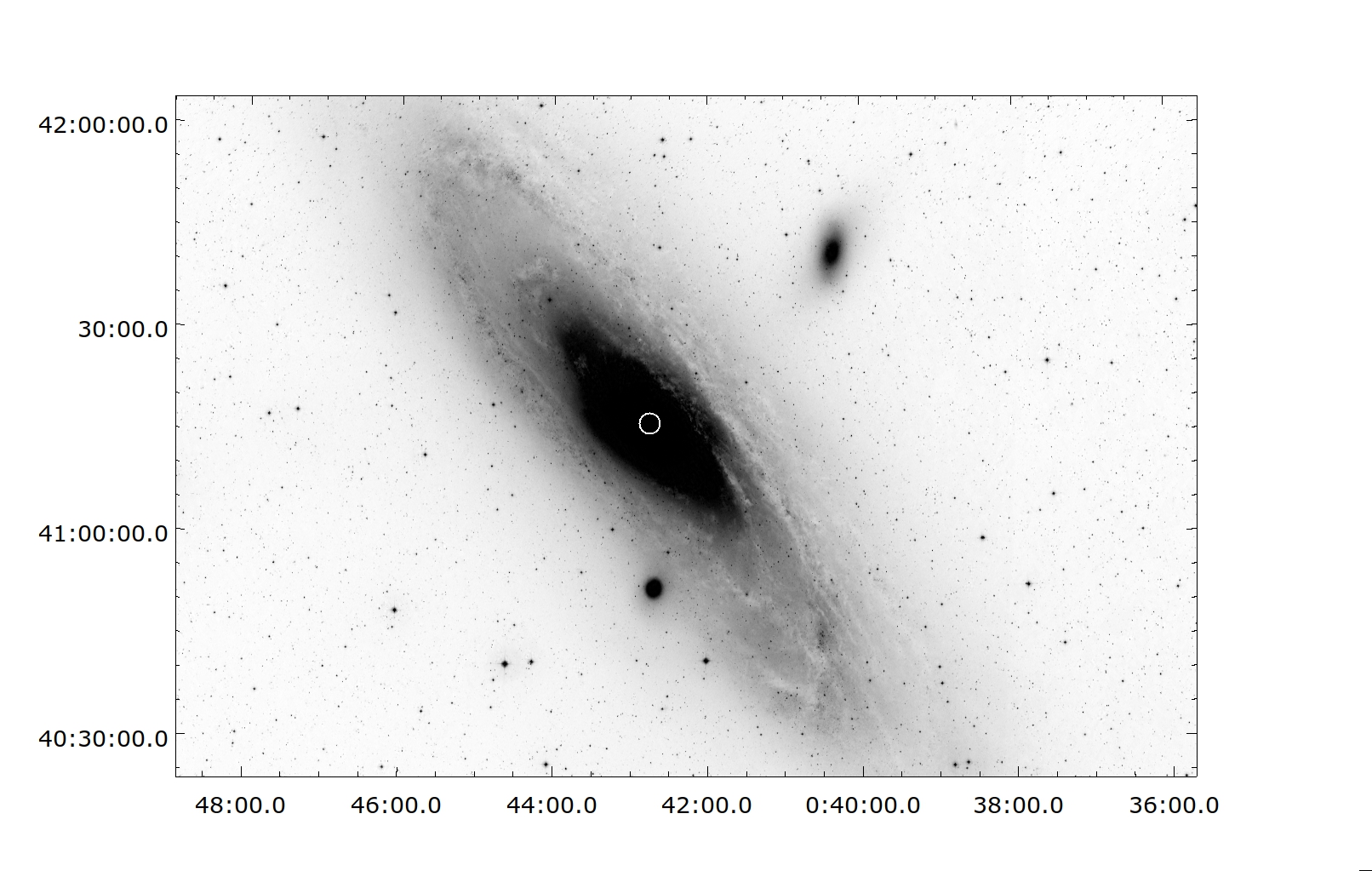 Below: Image of M31 with the center beam of FAST at L-band indicated