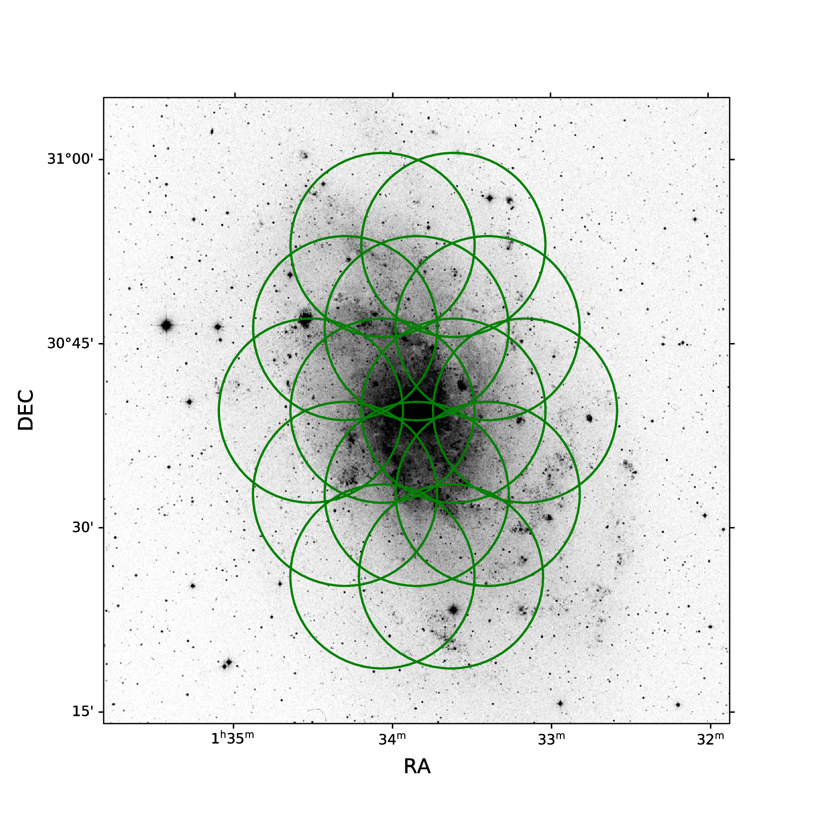 Below: (left) Optical image of M33, the Triangulum Galaxy, and (right)