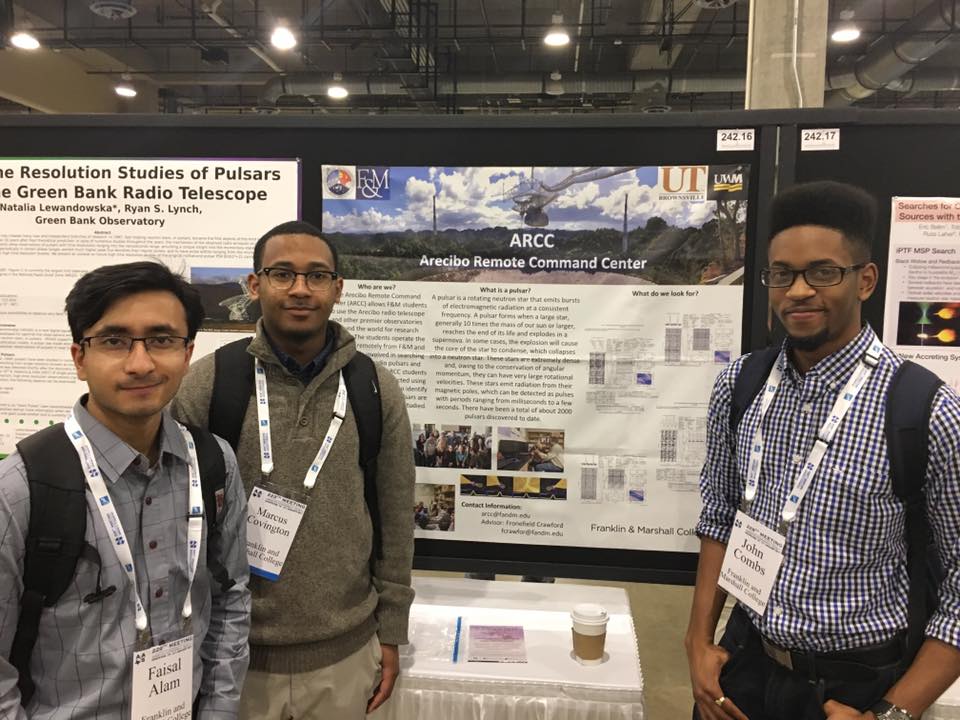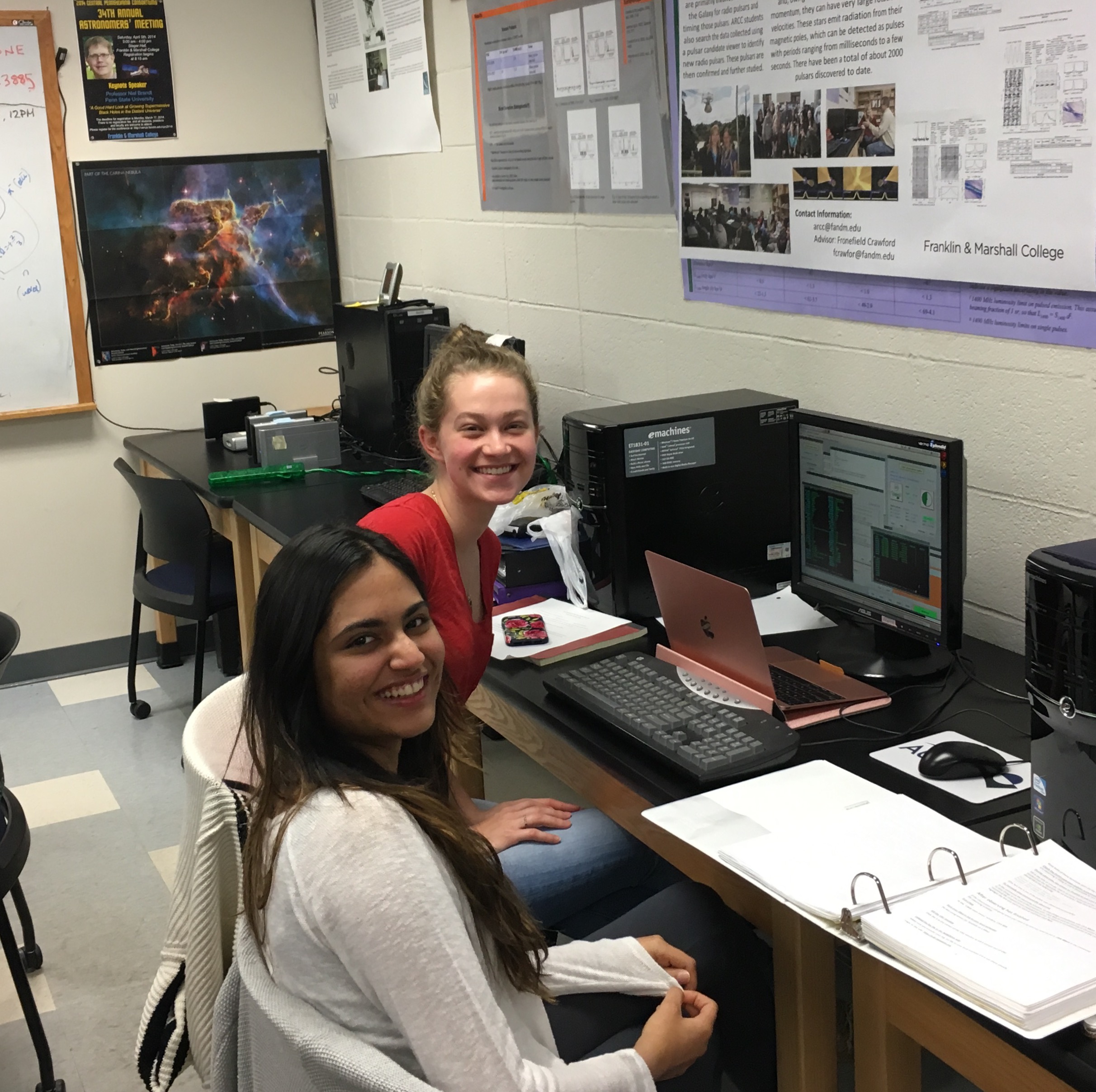 The NANOStars research and education program is part of the NANOGrav Physics Frontiers Center, an effort to detect gravitational waves using pulsar timing. NANOStars allows F&M students to use the premier radio observatories around the world for pulsar projects. NANOStars students search the data collected using a pulsar candidate viewer to identify new radio pulsars. These pulsars are then confirmed and further studied.