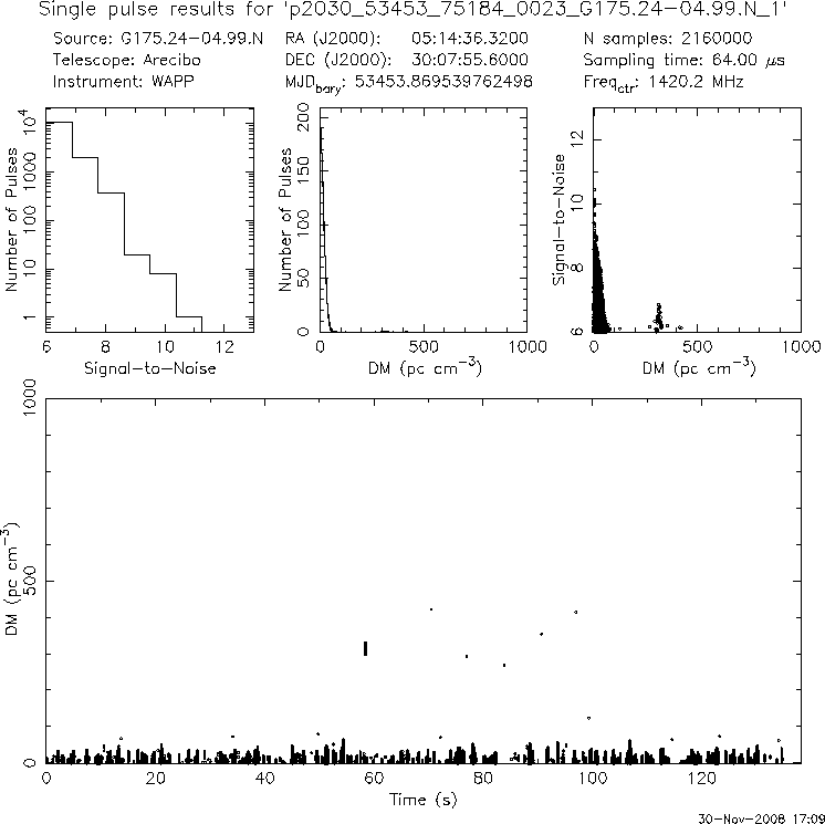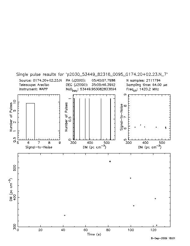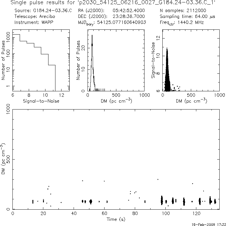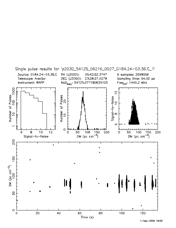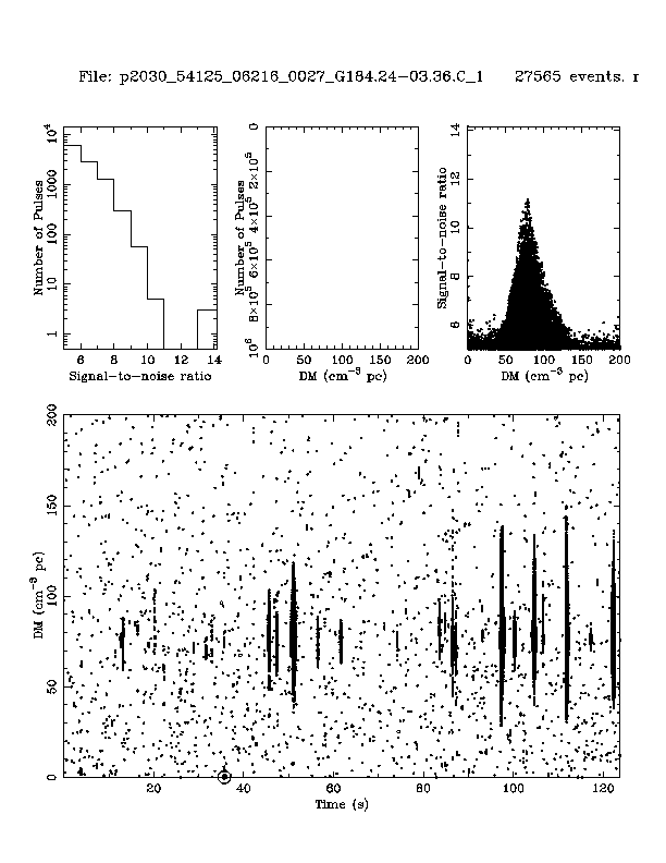 | 7 | p2030 | p2030_54125_06216_0027_G184.24-03.36.C_1 | 80 | 175 | 11.0 | J0543+2329 (DM=78, S1400=9.0 mJy, 9.8' away) | K | many pulses, strong prepfold | yes | yes |