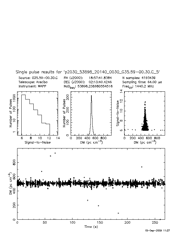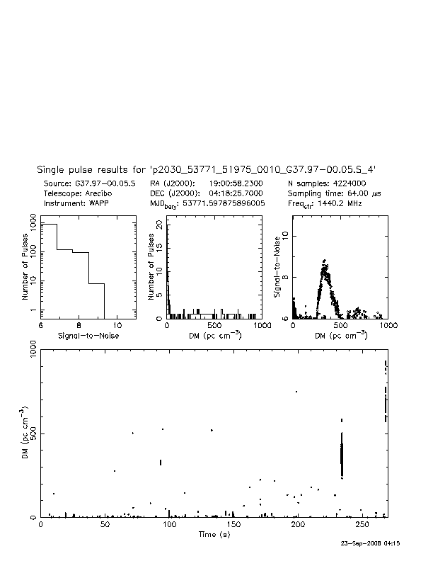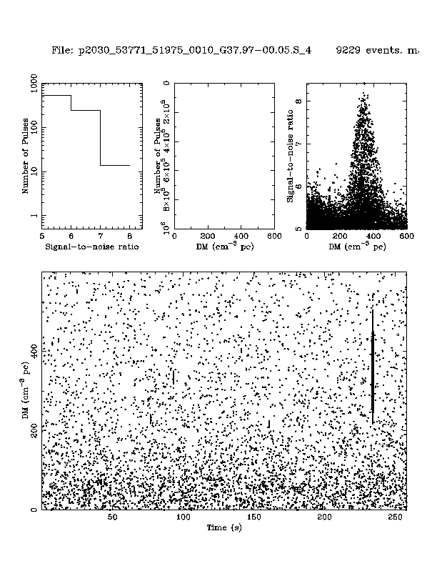 | 5 | p2030 | p2030_53771_51975_0010_G37.97-00.05.S_4 | 320 | 1080 | 9.0 | J1901+0413 (DM=352, S1400=1.1 mJy, 5.5' away) | K | prepfold detection | yes | no |