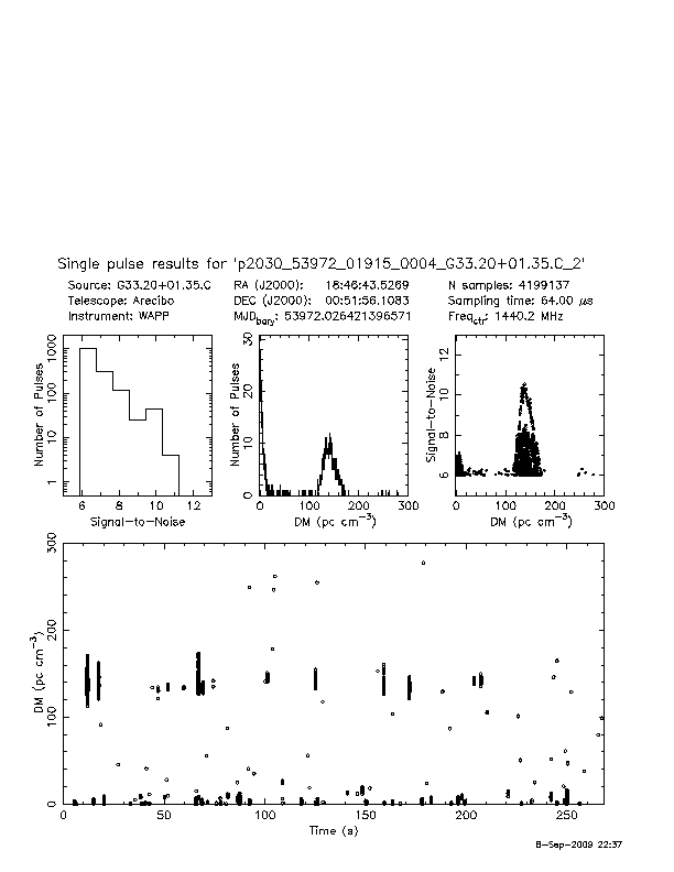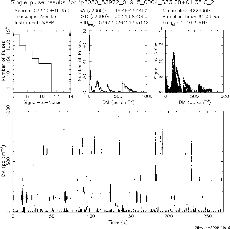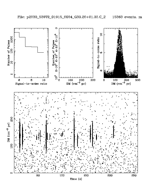 | 13 | p2030 | p2030_53972_01915_0004_G33.20+01.35.C_2 | 150 | 880 | 11.0 | J1846+0051 (DM=140, S1400=0.3 mJy, 0.3' away) | K | several pulses, strong prepfold | yes | yes |