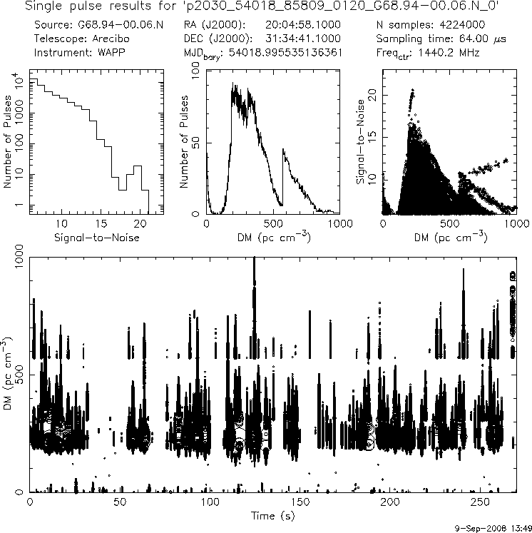 | 3 | p2030 | p2030_54018_85809_0120_G68.94-00.06.N_0 | 250 | 460 | 17.0 | J2004+3137 (DM=235, S1400=1.8 mJy, 2.7' away) | K | many pulses, strong prepfold | yes | yes |