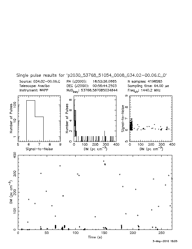 | 21 | p2030 | p2030_53768_51055_0008_G34.02-00.06.C_0 | 180 | 1260 | 16.0 | J1853+0056 (DM=180, S1400=0.2 mJy, 0.9' away) | K | prepfold detection | yes | no |