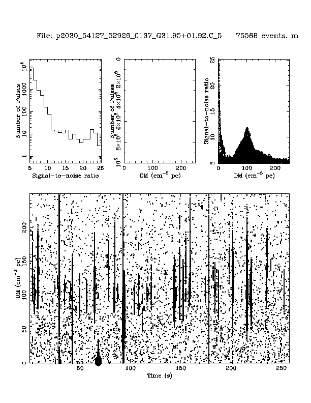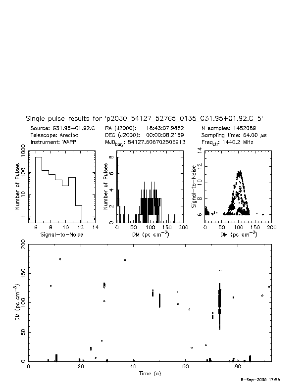 | 2 | p2030 | p2030_54127_52765_0135_G31.95+01.92.C_5 | 100 | 780 | 13.0 | J1843-0000 (DM=102, S1400=2.9 mJy, 5.1' away) | K | several pulses, strong prepfold | yes | yes |