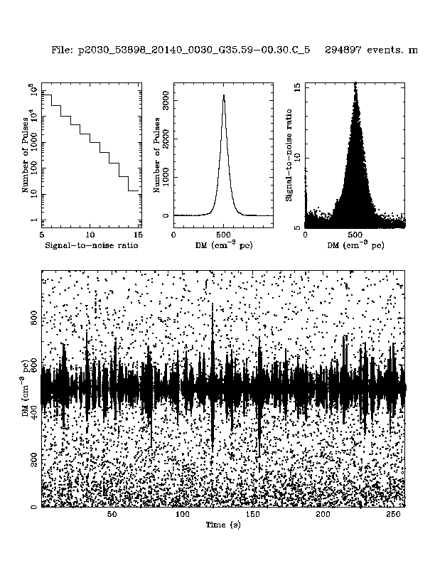 | 16 | p2030 | p2030_53898_20140_0030_G35.59-00.30.C_5 | 500 | 1120 | 22.0 | B1855+02 (DM=507, S1400=1.6 mJy, 1.1' away) | K | many pulses, strong prepfold | yes | yes |